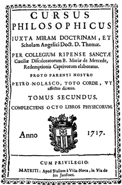 Коллегия святой Цецилии босых мерседариев (Collegium Ripense Sanctae Caeciliae, Discalceatorum B. Mariae de Mercede, Redemtionis Captivorum elaboratus), основанная в XVII веке в небольшом городке Ривас (недалеко от Мадрида), разработала и издала в 1717–1718 годах курс томистской философии, доктринально близкий к томистской традиции философских курсов Алькалы-де-Энарес у доминиканцев в коллегии Комплутума святого Фомы (Collegium Complutense Sanctus Thoma) и босых кармелитов в коллегии Комплутума святого Кирилла (Collegium Complutense Sancti Cyrilli).