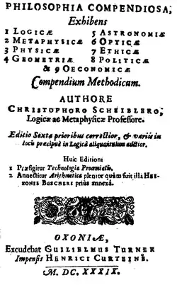 Компендиумы философии в протестантской схоластике обычно содержали все известные на то время области знаний. «Philosophia compendiosa» (1639) Христофа Шейблера включает разделы: