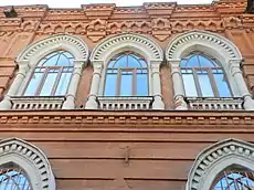 Выразительность зданию придаёт большое количество окон и их богатое оформление. На южном и северном фасадах расположены крупные окна, завершающиеся стрельчатыми арками с характерными для модерна переплётами; кроме того, значительный художественный эффект обеспечивают большие круглые окна на втором ярусе с западной стороны северного фасада[2].