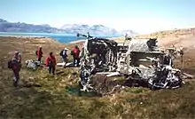 Миллс и его люди заметили вертолёт и обстреляли его из автоматов. Пилоту удалось перелететь через залив и совершить жёсткую посадку на южном берегу. Два человека погибли, четверо получили ранения. В это же время отряд Луны начал выдвигаться к Шеклтон-хаусу, но морские пехотинцы оказались прижаты к земле плотным огнём британцев[6]. Луна запросил огневую поддержку с «Геррико».