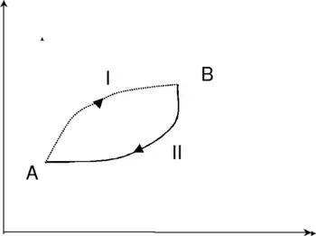 Второй интеграл, взятый по обратимому участку AIIB, представляет собой разность энтропий между точками A и B. Отсюда следует, что для любого необратимого процесса в любой системе