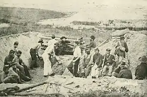 Четыре роты 7-го Коннектикутского полка и добровольцы-артиллеристы обслуживали осадные орудия.