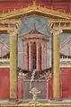 Согласно с первым стилем, инновация в эффекте тромплей (это техника рисования, при которой реализуется «обман зрения», на стенах рисуются окна, двери или атриум, чтобы создать впечатление, что комната больше, чем она есть), реализуемом на стене, в котором на месте плинтуса рисовались ровные постаменты с фальшивыми колонами, ниши и двери позади которых открывалась перспектива.