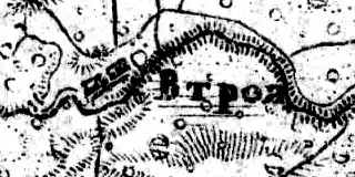 Деревня Втроя отмечена на карте профессора С. С. Куторги 1852 года[4].