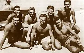 ![]() Сборная Югославии на Олимпиаде 1956 года. Бошко Вуксанович крайний справа в первом ряду | |