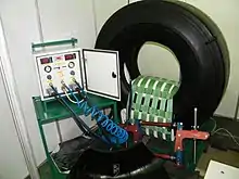 Электри́ческий вулканиза́тор представляет собой струбцину, одной из губок которой является нагревательный элемент. Заплатка из сырой резины плотно прижимается нагревательным элементом к камере. Чтобы при вулканизации не произошло слипание нагревательного элемента с заплаткой, автолюбители обычно подкладывают кусок бумаги.