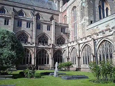 С 1360 года неф заканчивал John Clyve, он построил свод, западный фасад, северный портал и восточную часть клуатра. Он же укреплял капитулярную залу, передал свод и добавив контрфорсы. Шедевром его считается центральная башня, законченная в 1374 году шпилем из дерева под свинцовой кровлей, ныне утраченным. В 1404—1432 годах неизвестным архитектором добавлены северная и южная части клуатра, который замкнул восточной галереей в 1435—1438 Джон Чапмен (англ. John Chapman). Последней крупной пристройкой стала капелла принца Артура справа от южного бокового нефа хоров (1502—1504)[3][24].