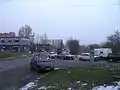Конец улицы. На правой части снимка автомобили, поворачивающие на Головинское шоссе, Нарвскую улицу (в сторону Кронштадтского бульвара) и Михалковскую улицу (двустороннее движение). На левой — одностороннее движение, поворот на Нарвскую улицу (в сторону ул. Клары Цеткин)