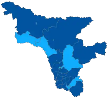 | Прошлые выборы | 17 (44,21 %) | 8 (21,29 %) | 8 (19,78 %) |