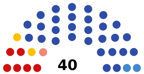 | Прошлые выборы | 29 (41,17 %) | 4 (16,65 %) | 1 (7,06 %) |