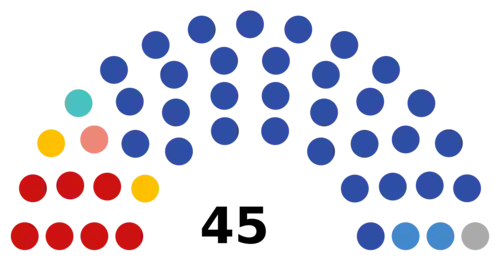 | Прошлые выборы | 35 (50,17 %) | 5 (18,14 %) | 4 (18,44 %) |