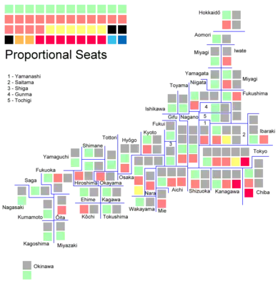 | Комэйто | 7 639 437 (13,1%) | 6 | 3 | 9 | ▼ 2 | 19 | ▼ 1 |