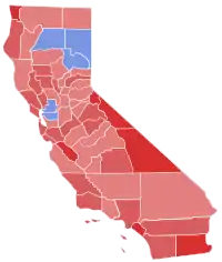 ![]() Результаты выборов по округам. Красным цветом обозначены округа, в которых победил Никсон. Синим цветом обозначены округа, в которых победила Дуглас. | |||