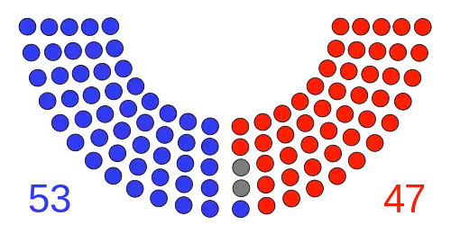 Демократическая партия получила 53 места (включая двух независимых в коалиции), а Республиканская — 47.