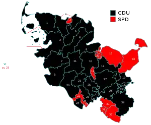 ![]() Результаты выборов по избирательным округам. ХДС СДПГ | |||