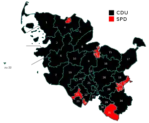 ![]() Результаты выборов по избирательным округам. ХДС СДПГ | |||