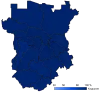 ![]() Карта результатов выборов. Синим цветом обозначены муниципальные образования, в которых победил Рамзан Кадыров. | |||