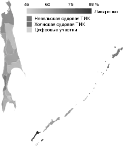 ![]() Карта результатов выборов по территориальным избирательным комиссиям | |||