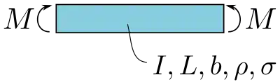 Во второй ситуации материал подвергается воздействию изгибающих моментов. Уравнение максимальных напряжений при изгибе имеет вид , где — изгибающий момент, — расстояние от нейтральной оси, — момент инерции сечения. Схема приложения нагрузки изображена на рисунке 2. Используя приведенное выше соотношение для массы и решив его для свободных переменных, получится соотношение , где — длина, а — высота балки. Если , , и — фиксированные переменные, то индекс эффективности при изгибе имеет вид .