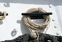 Вы́броска (бросáтельный конéц[1]) — линь с грузом для подачи швартова с судна на пирс, на другое судно, при заводке буксирных тросов. Груз представляет собой парусиновый мешок, набитый песком. На мешке укрепляют стропу с огоном в верхней части, после чего груз оплетают шкимушгаром горизонтальным или диагональным способами. На конце линя делают огон. Иным способом груз изготавливают из узла «обезьяний кулак». Выброску (бросательный конец) привязывают к огону швартова различными узлами, например, выбленочным узлом с петлёй или же штыком, также дополненным петлёй для быстрого развязывания узла (на российском торговом флоте — обычно казачьим узлом). Выброска (бросательный конец) должна быть закреплена к огону на некотором расстоянии от его вершины, в противном случае при набрасывании швартова на пал узел будет зажат.[2] Так как швартов — тяжёл и его невозможно забросить далеко, к огону швартова крепят выброску (бросательный конец), на конце которой закреплён груз. При швартовке судовая швартовая команда бросает выброску (бросательный конец) в сторону береговых швартовщиков. Береговые швартовщики выбирают выброску (бросательный конец) со швартовом и крепят их на пал причала, выброску (бросательный конец) бросают на судно. В настоящее время бросательный конец обычно называют «выброской».
