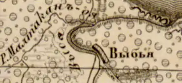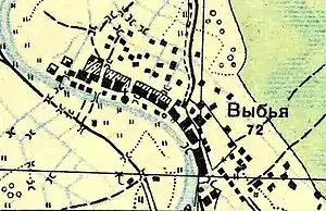 ВЫБЬЯ — деревня казённая при реке Выбье, число дворов — 14, число жителей: 52 м. п., 63 ж. п. (1862 год)[14]