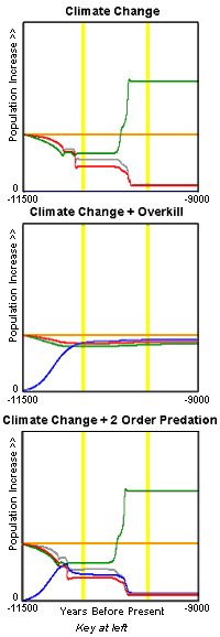 Результаты математического моделирования истории климатических изменений и истории заселения планеты людьми показали, что в 20% случаев вымирания мог преобладать климатический фактор, в 64% случаев большее совпадение с процессом вымирания показали модели, базирующиеся на истории заселения людьми[9].
