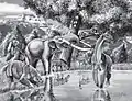 - Graham, R.W., Lundelius, E.L. (1989). «Coevolutionary disequilibrium and Pleistocene extinctions». In Martin, P.S.; Klein, R.G. Quaternary extinctions: A prehistoric revolution. Tucson, AZ: Univ. Arizona Press. pp. 354—404.
