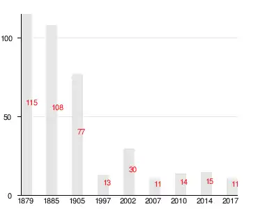| 1879 | 1885[14] | 1905[15] | 1997 | 2007[16] | 2010[17] | 2014[18] |