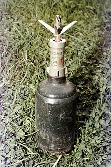Выпрыгивающая мина (в народе "мина-лягушка") — противопехотная выпрыгивающая осколочная мина кругового поражения.