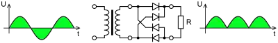 - Двухполупериодный выпрямитель — однофазные, трехфазные, мостовые