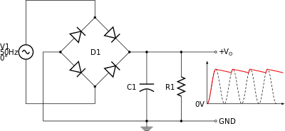 Большинство выпрямителей создаёт не постоянный, а пульсирующий ток, для сглаживания пульсаций применяют фильтры.