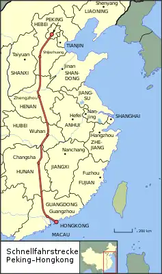 Высокоскоростная пассажирская линия Пекин — Гонконг (кит. трад. 京广深港高速铁路, упр. 京廣深港高速鐵路) — широкомасштабный проект по организации беспересадочного железнодорожного сообщения между крупнейшими городами Китая и провинциальными центрами, соединяющий столицу Китая Пекин, столицу провинции Хэбэй город Шицзячжуан, столицу провинции Хэнань город Чжэнчжоу, столицу провинции Хубэй город Ухань, столицу провинции Хунань город Чанша, столицу провинции Гуандун город Гуанчжоу и крупнейший промышленный конгломерат Шэньчжэнь и Гонконг. Меридиональная дорога построена параллельно уже существующей трассе Пекин — Гонконг, которая не удовлетворяла современным требованиям по скоростям и пассажирообороту.