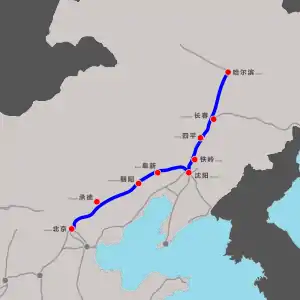 Шэньян — Чанчунь — Харбин, и включающую в себя ветку Шэньян — Далянь через Аньшань и Инкоу — строительство начато 23 августа 2007 года, ожидается пуск в эксплуатацию в июле 2012 года