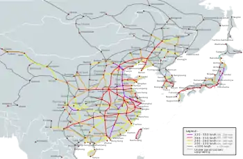 Высокоскоростные магистрали Восточной Азии 320-350 км/ч 265−310 км/ч 240−260 км/ч 200−230 км/ч <200 км/ч