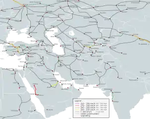 Высокоскоростные магистрали Западной Азии 270−300 км/ч 240−260 км/ч 200−230 км/ч <200 км/ч