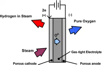 Очень важен выбор материалов для электродов и электролита в ячейке твердооксидного электролизера. В одном из исследуемых вариантов процесса[5] использовались электролиты из оксида циркония, стабилизированного оксидом иттрия, никель-керметные паровые/водородные электроды и электроды из смешанного оксида лантана, стронция и кобальта и кислорода.