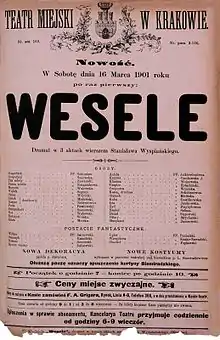 Стани́слав Матѐуш Игна̀ци Выспя́ньский (польск. Stanisław Mateusz Ignacy Wyspiański; 15 января 1869, Краков — 28 ноября 1907, там же) — польский поэт, драматург, живописец, дизайнер мебели и интерьеров, театральный деятель. Будучи патриотически настроенным писателем, создал серию символических национальных драм, проникнутых художественной философией движения «Молодая Польша». Выспяньский являлся одним из наиболее выдающихся и разносторонних художников Европы своего времени. В творчестве он удачно сочетал идеи модерна с фольклорными и историческими мотивами. Неофициально его называли «четвёртым польским пророком» (наряду с польской «троицей» поэтов-пророков (Мицкевичем, Словацким, Красиньским).