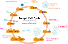 Дикарионы показаны в цикле митоза базидиомицета. Обратите внимание на два ядра, происходящие из двух отдельных исходных грибов.
