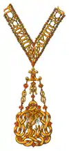 В 1869 году было официально утверждено использование большой и малой цепи. Большая цепь носилась в день Рождества Христова, в праздник Благовещения, во время национальных и дворцовых торжеств. Вместе с большой цепью была учреждена нагрудная звезда ордена, которую следовало носить вместе с большой цепью. Звезда носилась на левой стороне груди. Во всех остальных случаях предписывалось носить малую цепь без звезды. Большая цепь после смерти обладателя, кроме редких официально разрешенных случаев, возвращалась родственниками усопшего Королю. Каждая возвращенная цепь регистрировалась в списке кавалеров ордена.