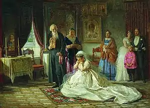 Плачевная традиция особенно развита на Русском Севере и у финно-угорских народов[1]. Свадьбу Русского Севера (свадьба-похороны) отличают печальный характер обрядов, причитания невесты, матери, сестёр, подруг, а также прощальные обряды расставания с символами девичества[2][3]: