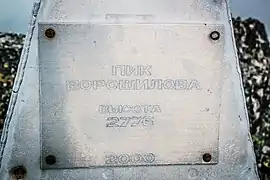 На отметке высоты, расположенной на вершине указано название «Пик Ворошилова», однако на некоторых картах[1][2] пик имеет название «Вышеивановский белок» — что тоже является истинным его наименованием.