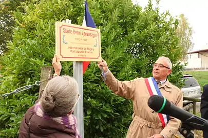 Открытие на стадионе мемориальной доски Анри Лакассаня (2014 год)