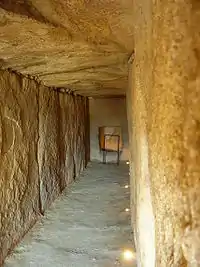 Дольмен Вьера — вид изнутри. На заднем плане видна плита с отверстием, являющаяся стеной камеры