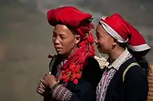 Костюм народа зао (вьетнамское наименование яо, в который входит несколько этнических групп, в том числе, яо с монетками и красные яо), состоит из вышитых штанов и рубашки, причём зао с монетками широко используют монетки, бисер и вышивку[8]. Красные зао названы так по цвету головного платка и основному цвету отделки костюмов. У красных зао женщины носят длинную рубашку, а мужчины — две: короткую и длинную, причём и мужским, и женским рубашкам вышивают рукава так, что кажется, будто короткий рукав надет поверх длинного[9]. Нижние штаны вышивают растительным, фруктовым, квадратным орнаментами, свастикой, поверх них надевают чёрные штаны без рисунка.