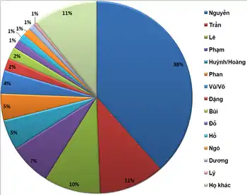 Ниже приведён список из 14 самых распространённых во Вьетнаме фамилий. Все вместе они составляют 90 % фамилий вьетнамцев. Фамилии приводятся со своими китайскими эквивалентами и числом носителей в процентном соотношении[3]: