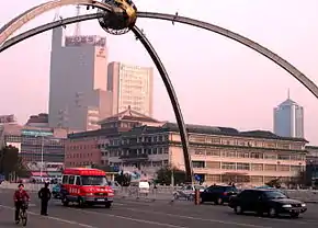 ![]() Мост Ясин (亚星桥) и скульптура на нём: земной шар на пересечении стальных арок — достопримечательность города Вэйфан | |