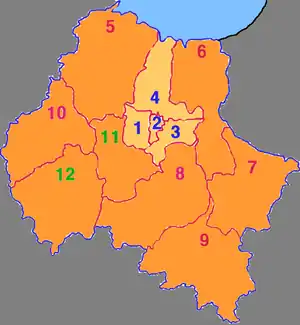 | 3 | Район | Фанцзы | 坊子区 | Fāngzi qū | 250 000 | 345 | ||