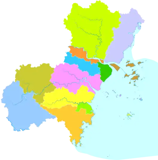 Городской округ Вэньчжоу делится на 4 района, 3 городских уезда, 5 уездов: