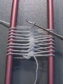 Вязание на вилке — вязание крючком на куске толстой проволоки, согнутой в виде буквы «U».
