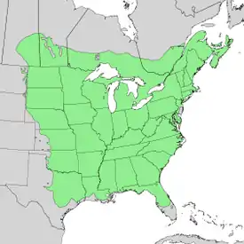 В природе ареал вида охватывает Северную Америку — от Нью-Брансуика и Манитобы (Канада) на севере до Флориды и Техаса (США) на юге[2].